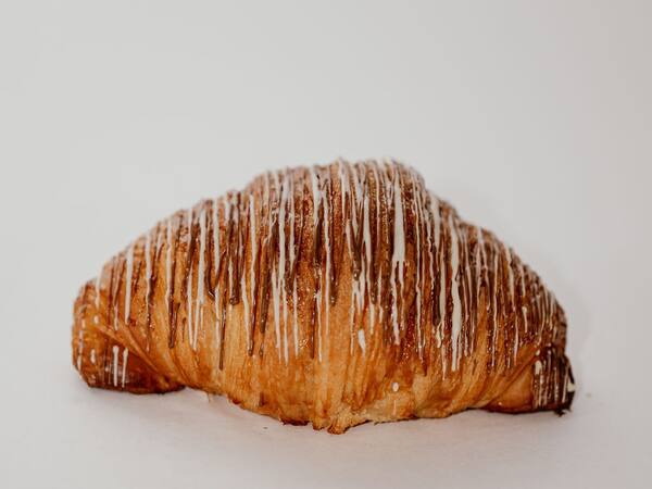 Luxuoso croissant recheado com chocolate branco, chocolate meio amargo e chocolate ao leite, formando uma combinação inesquecível para os amantes de chocolate.