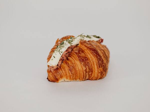 Massa folhada com parmegiano, recheada com provolone e com mussarela derretida por cima.