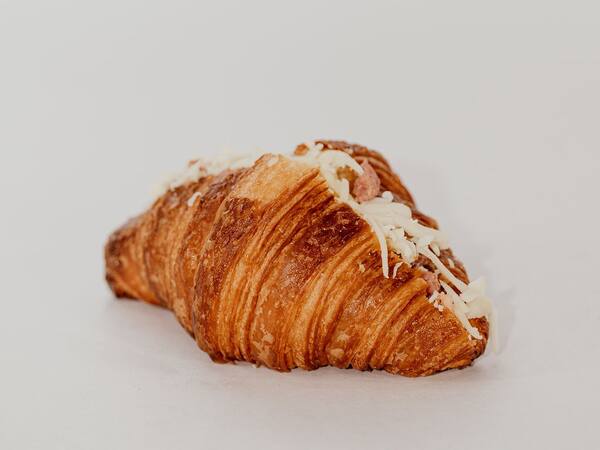 Massa folhada com parmegiano, recheada com provolone e com mussarela derretida por cima.