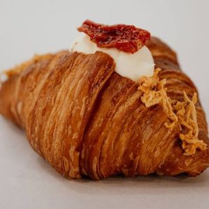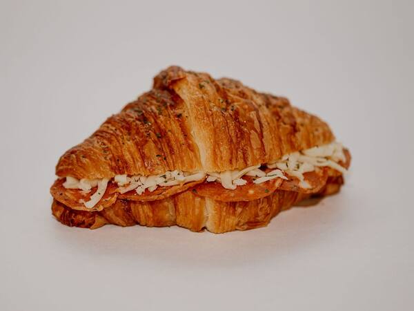 Massa folhada com parmegiano, recheada com provolone e com mussarela derretida por cima.